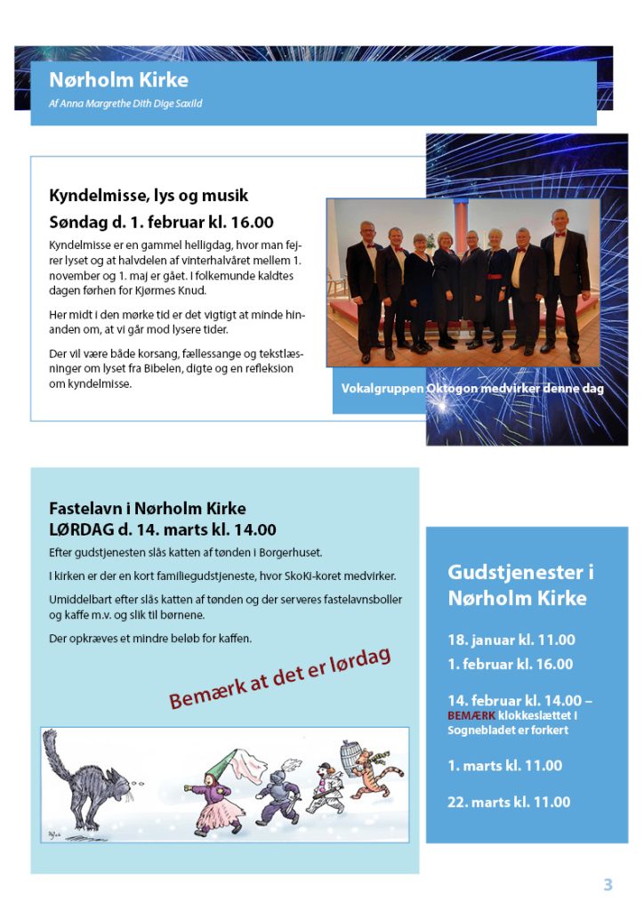 - Aktiviteter og arrangementer i Nørholm Kirke (Kyndelmisse, Fastelavn, koncerter)